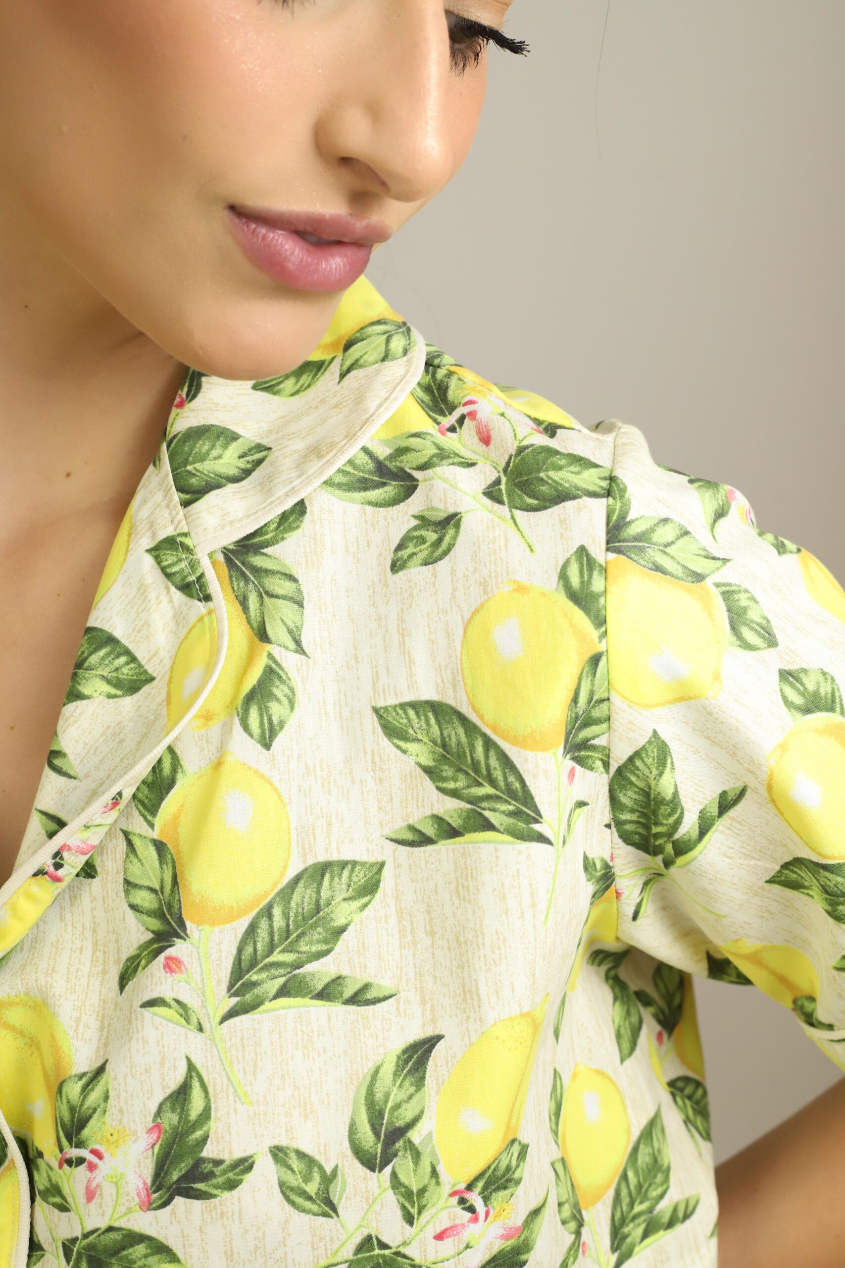 O Flor de Limão – Pijama com Estampa de Limões transforma o descanso em um momento cheio de energia, frescor e charme.